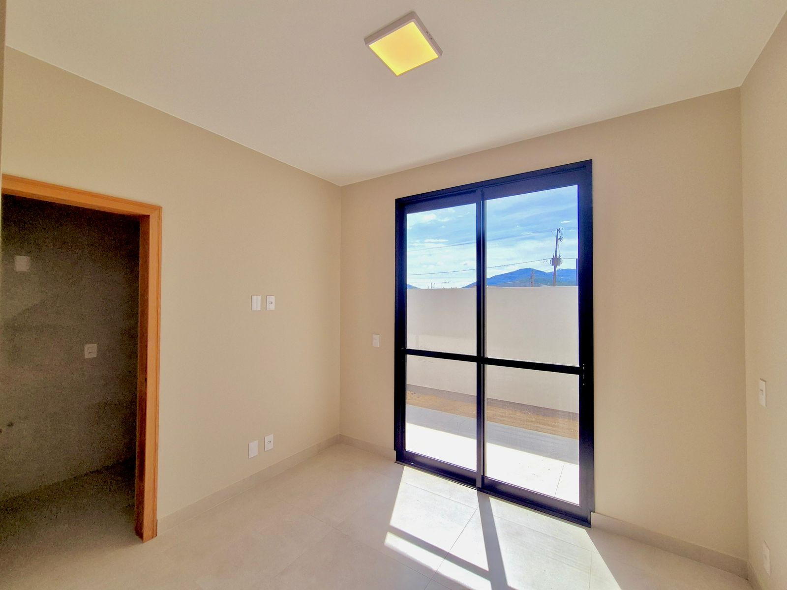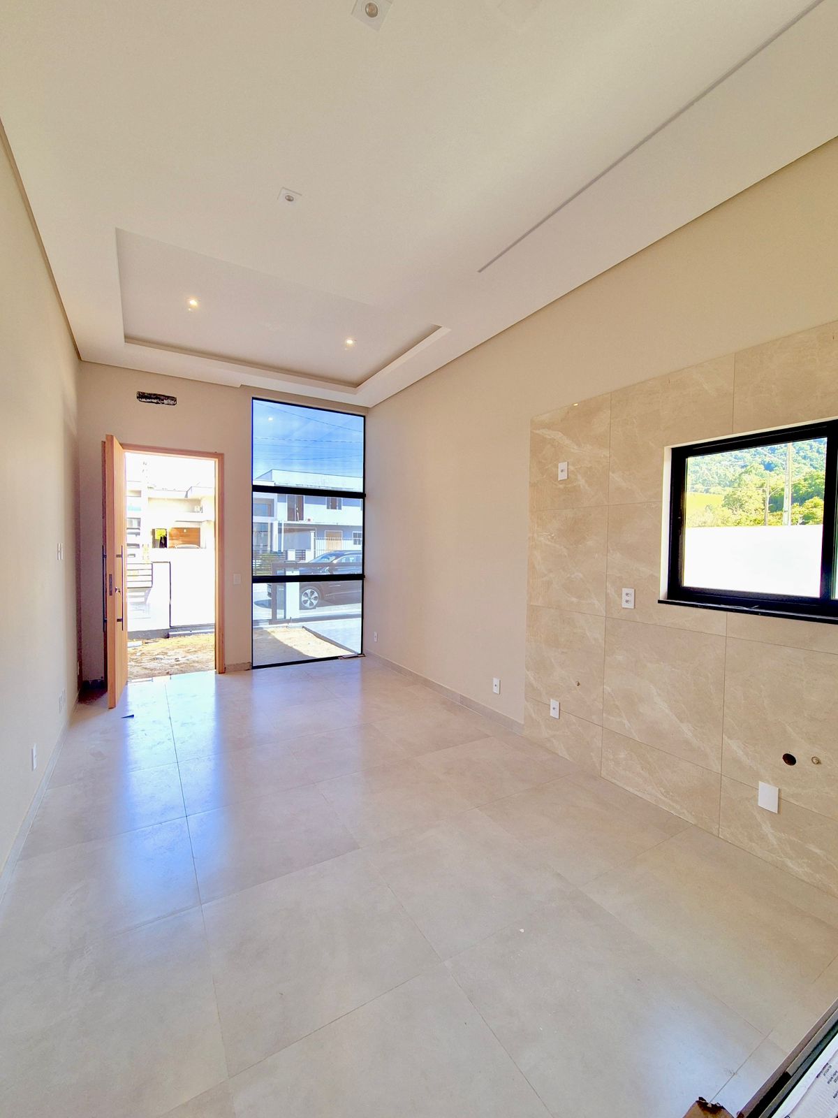 Porta pivotante, pele de vidro e churrasqueira em localização valorizada de Forquilhas.